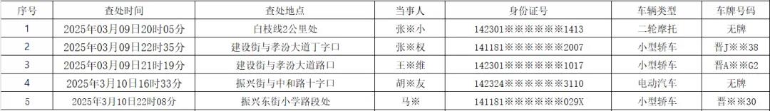 【酒醉驾曝光】吕梁市3月9日至3月10日酒醉驾交通违法行为查处情况
