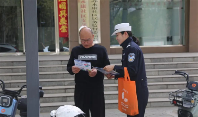 本网讯:(郝华斌)为进一步筑牢春季道路交通安全防线,提升广大交通参与者的交通安全意识、法治意识和文明意识。4月17日,霍州市公安局交警大队综合科民警走进辖区永康社区开展面对面宣传活动,将交通安全走进生活、贴近群众。