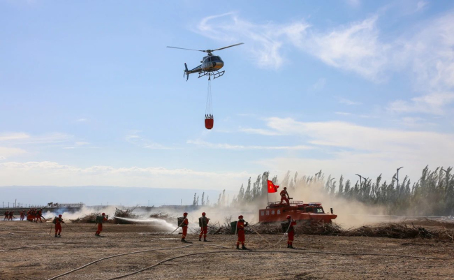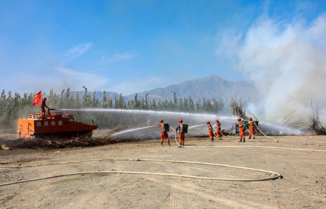 本网讯:(孙康康)为圆满完成自治区“应急天山·2023”抗震救灾综合实战演练,8月25日支队出动进驻和静县演练场地以来,巴州森林消防支队结合演练任务实际,认真开展森林草原火灾扑救训练,配合做好前期模拟演练工作。