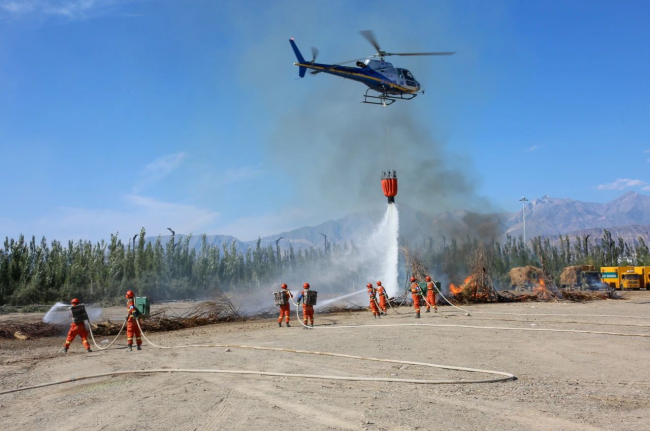 演练一线丨直升机吊桶、履带式森林灭火装甲车真烟实火练为战