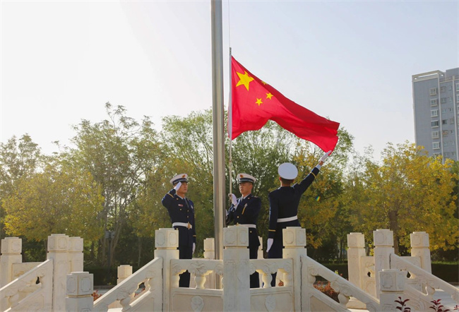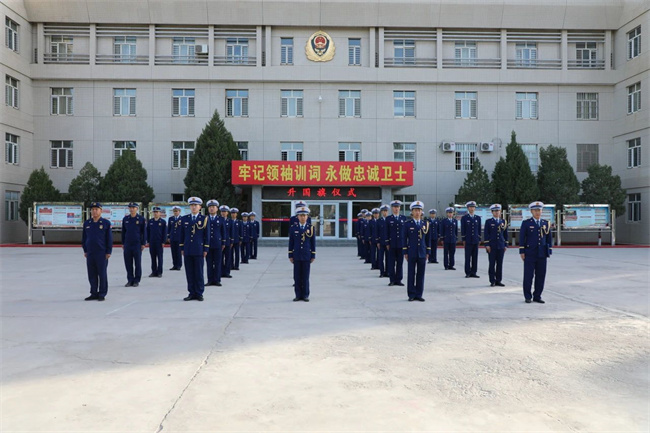 为大力弘扬爱国主义精神,激发全体指战员的爱国热情,10月1日,支队异地(支队营区、阿克苏大队营区)同步隆重举行升国旗仪式。上午10时许,升旗仪式正式开始。3名护旗手迎着朝阳,迈着矫健的步伐向升旗台走来。“起来,不愿做奴隶的人们……”,伴随着国歌,升旗手奋力一掷,鲜艳的五星红旗舒展开来,在全体指战员的庄严注视下冉冉升起。支队领导代表支队党委向全体指战员致以节日的祝福和诚挚的问候,并作了热情洋溢的讲话。进一步激发了全体指战员的爱国主义情怀,为有效履行新职责新使命提供强大精神动力。