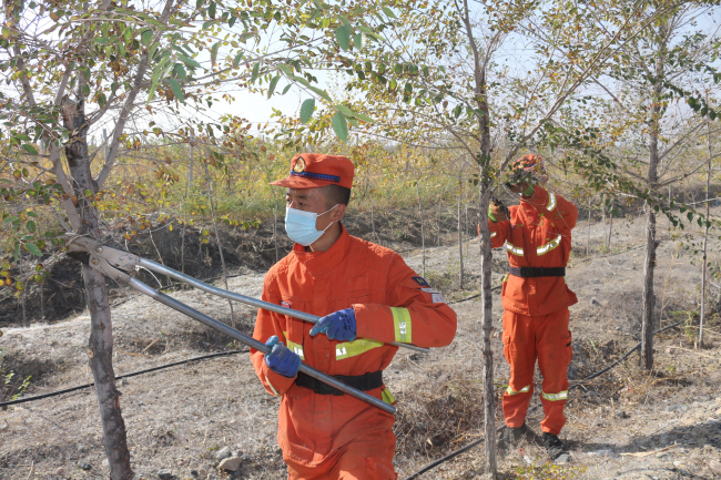 本网讯:(岳俊伟)为深入贯彻落实"绿水青山就是金山银山"的生态文明理念,改善乌苏市生态和人居环境,进一步丰富义务植树履责形式,提高义务植树尽责率,全面加强群众植绿、爱绿、护绿意识,使乌苏市造林绿化工作质量全面提高。近日,乌苏市森林消防大队积极响应乌苏市政府下发《关于做好2023年秋季义务植树活动的通知》的有关要求,派出4台车辆、40人前往乌苏市炮台梁生态林开展清理杂草,修剪枯枝活动。 一片绿色就是一处风景,一棵树苗就是一个希望。上午10时30分,消防救援人员们已然早早地到达指定场地,随后,在林业技术人员与乌苏市森林消防大队副政治教导员段鹏程同志的交涉下划分了作业场地。 活动现场呈现出一幅忙碌的景象,参加劳动的指战员们热情洋溢、干劲十足、密切配合、一丝不苟,有用铁锹的,有用耙子的,在大家的齐心协力下,杂草很快被清理干净,树苗被修剪的笔直,一棵棵树苗像“卫士”一样,挺立在戈壁滩上。全体指战员以实际行动强化植绿、护绿、爱绿的意识,践行“绿水青山就是金山银山”的理念,为驻地生态环境增添了勃勃生机。 爱绿护绿,我们在行动。活动结束后,大家纷纷表示,改造生态环境,能够为建设美丽乌苏贡献力量,深感骄傲和自豪,将在今后的工作中,深入践行全心全意为人民服务的宗旨,与驻地群众携手同心打造绿水青山,用自己的坚守与担当去守护绿水青山,持续推动驻地生态文明建设再上新台阶。 责编:李鹏 乔佳 |