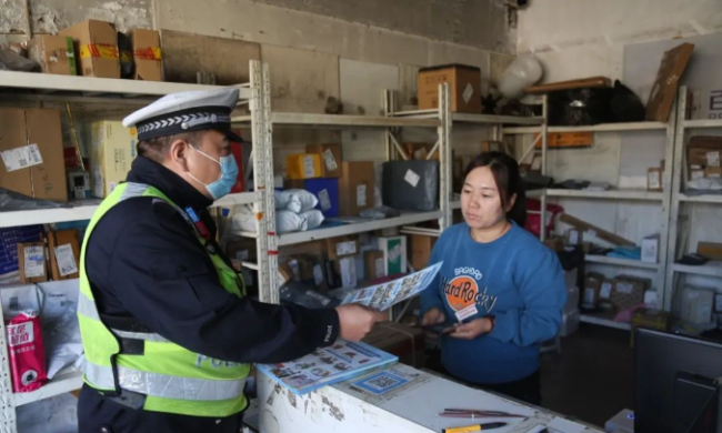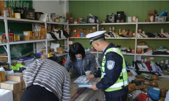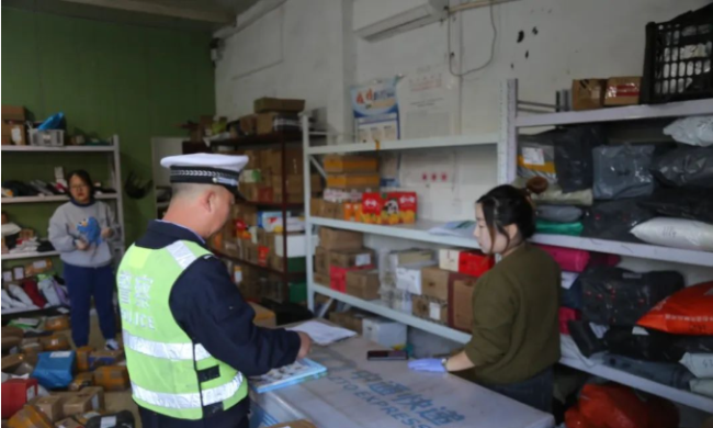 【冬季交通安全宣传】霍州公安交警进快递 “双十一”前话安全