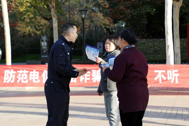 本网讯:(薛苏俊)为更好维护群众财产安全,进一步提高居民反诈意识。洪洞县公安局多措并举、精心谋划,全方位、多层次、多形式开展反诈宣传活动,为辖区群众切实织密防骗“安全网”,维护社会和谐稳定。 11月7日一大早,反诈中心民警就来到辖区大槐树文化中心广场开展反诈宣传活动,向晨练的群众发放宣传材料,并结合近期典型案例介绍了电信网络诈骗案件中常见的作案手段,普及防范技巧,对群众提出的问题,耐心地进行解答。此次活动共计发放诈骗相关宣传资料200余份。 一晨练的王女士说,“原来不是特别了解电信诈骗的类型,通过这一次反诈宣传,也了解了很多,再有类似的诈骗电话,就不会上当受骗了。 此次宣传活动旨在进一步扩大反诈宣传覆盖面,有效提高了群众对电信诈骗的防范、鉴别和自我保护能力,为创建平安和谐洪洞提供了有力保障。下一步,洪洞县公安局将常态化开展防范电信网络诈骗宣传工作,加快建立防范电信网络诈骗的坚固屏障,营造和谐稳定的社会氛围。 责编:李鹏 景虎子