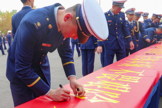 本网讯:(孟杰)为进一步深入学习贯彻习近平总书记重要训词精神,进一步铭记领袖嘱托、强化使命担当,全面展示总书记授旗训词五周年以来队伍的良好精神风貌和建设成效。11月8日下午,伊犁森林消防支队严密组织重温习总书记重要训词和入队誓词暨签名纪念活动。 2018年11月9日,习近平总书记在人民大会堂亲自为国家综合性消防救援队伍授旗并致训词,标志着一支全新的人民队伍举旗定向、踏上征程,这是全国消防救援队伍永远铭记的历史性时刻。时序更替,荣光永驻,五年来,支队在部、局、总队党委的坚强领导和关心支持下,聚焦“主力军、国家队”职能定位,着眼“全灾种、大应急”任务需求,将时刻牢记训词精神,忠实践行训词要求,真正将训词融入血脉、植入灵魂,指导实践、推动工作。五年来,支队充分利用政治教育日、党团活动等时机进行常态化学习,号召全体指战员深植信仰根基,牢记训词精神和领袖嘱托,把忠诚融入血脉,把担当扛在肩上,把训词付诸行动,对标“国家队、主力军”,不断强化应急救援能力,积极回应人民群众的期盼,全力防范化解重大安全风险,应对处置各类灾害事故。 活动中,首先组织观看了习近平总书记授旗并致训词视频,并重温了入队誓词。“我志愿加入国家消防救援队伍,对党忠诚、纪律严明、赴汤蹈火、竭诚为民……”。全体指战员精神饱满,热血昂扬,高举右拳,面对队旗庄严宣誓,将对党和人民的无限忠诚融在誓言里。响彻营区的誓言使指战员更加坚定政治信仰,在举旗铸魂中延续忠诚血脉,一句句铿锵誓言表达了全体指战员为维护人民生命财产安全和社会稳定而奋斗终身的信心和决心,真正把“四句话”总要求融入血脉、植入灵魂,高举旗帜,奋勇前行,为维护人民群众生命财产安全和社会稳定而不懈奋斗。宣誓结束后,支队还组织全体指战员进行签名仪式,在支队建设发展中留下自己的名字。 活动结束后,大家纷纷表示:将始终牢记职责使命,践行训词精神,贯彻落实习近平总书记“十六字方针”总要求,发扬应急救援队伍“刀山敢上、火海敢闯”的精神,将牢记全心全意为人民服务的宗旨,以更加坚定饱满的精神状态,更加优质高效的服务,全力做好各项应急救援任务,为应急救援事业发展奉献自己的力量,不辜负党和人民的重托! 责编:李鹏 乔佳