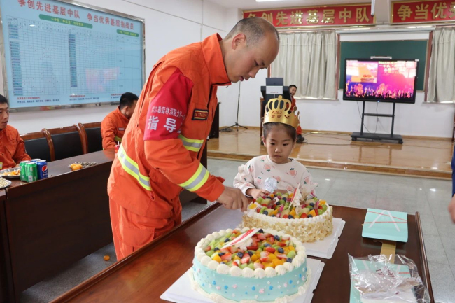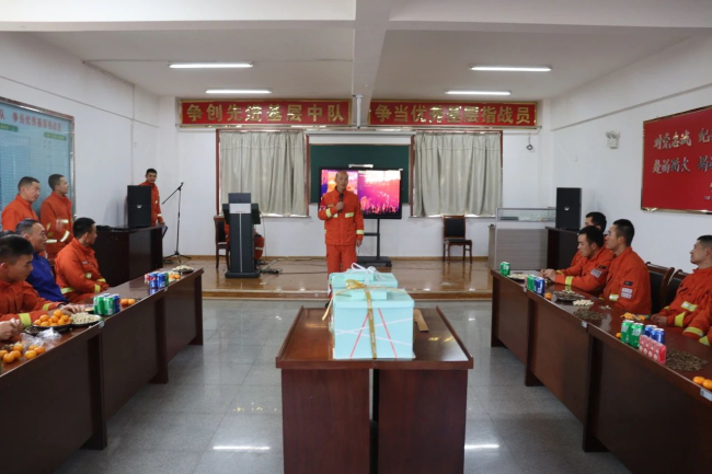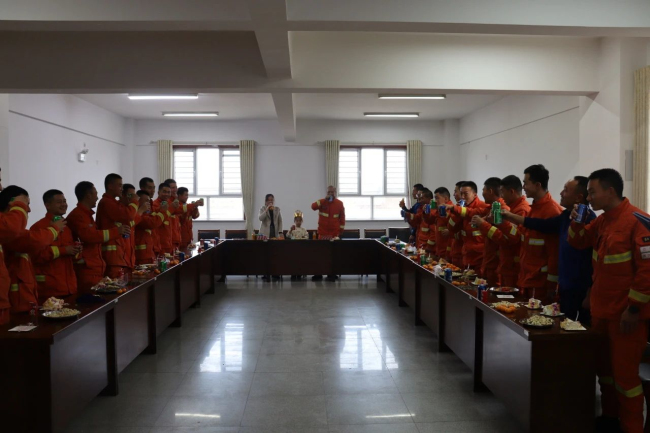 本网讯(闹日甫加甫)为进一步丰富指战员文化生活,充分调动和激发队伍凝聚力,向心力,营造一个和谐、温馨的集体环境。近日,巴州森林消防支队库尔勒大队一中队指战员欢聚一堂,精心筹划了一场特殊的119“蓝焰”集体生日晚会,庆祝授旗训词五周年纪念日。
