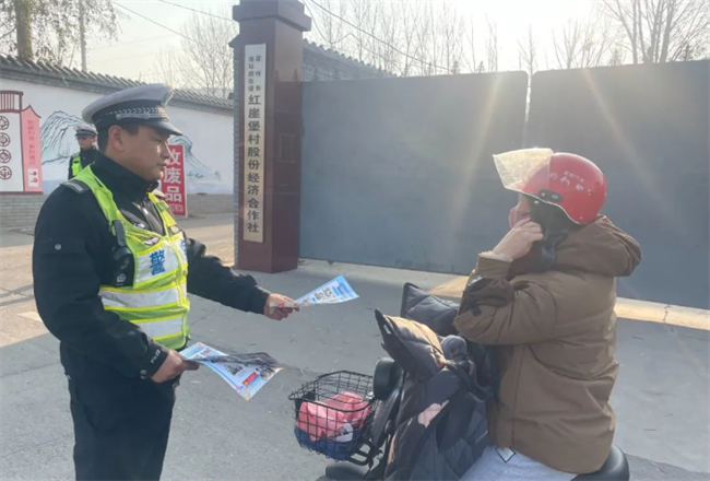 本网讯:(郝华斌)为迅速掀起“122”全国交通安全日宣传热潮,营造浓厚的交通安全宣传氛围,提高广大农村群众交通安全意识,有效预防和减少冬季恶劣天气辖区道路交通事故的发生。11月21日,霍州市公安局交警大队三中队、综合科民警深入辖区南庄村、红崖堡村开展开展“122”预热主题宣传活动。
