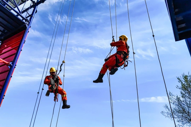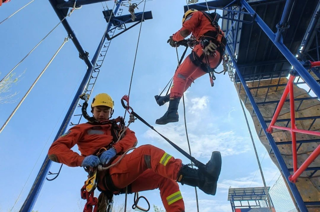 本网讯:(朱海峰 马志强)为进一步夯实绳索救援技术基础,提升队伍综合应急救援能力。连日来,新疆森林消防总队特勤大队持续开展绳索救援技术训练。