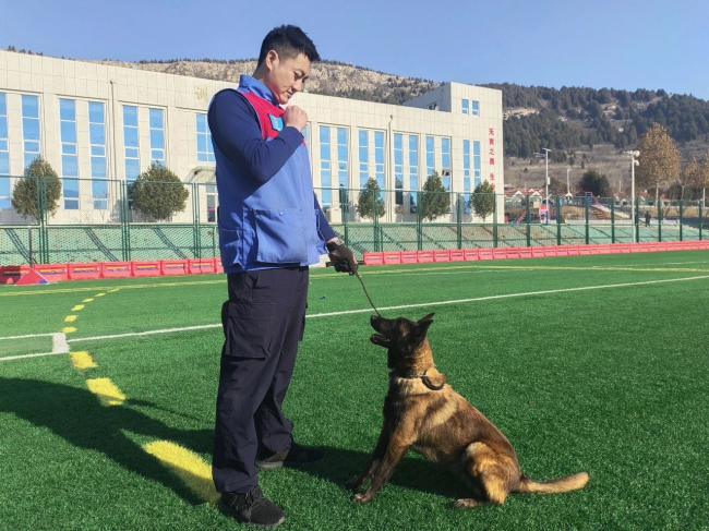 “小飒,上!快!跳!”,在山东搜救犬机动专业支队训练基地,搜救犬“小飒”正在训导员靳荣杰的指挥下进行日常训练。伴随着口令,今年8岁的搜救犬“小飒”始终和靳荣杰保持统一节奏,顺利完成单犬服从、过独木桥、穿越障碍、攀登等基础训练科目。