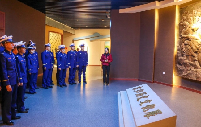 本网讯:(王振宇)为丰富指战员的精神文化生活,近距离感受巴州悠久的历史和浓厚的文化底蕴,推进主题教育向纵深开展,12月6日下午,巴州森林消防支队走进巴州博物馆,开展参观见学活动,通过感受一幅幅画卷、一件件文物背后的历史故事,了解巴州历史的变迁,感受中华优秀传统文化的博大精深,激发全体指战员的爱党爱国热情。
