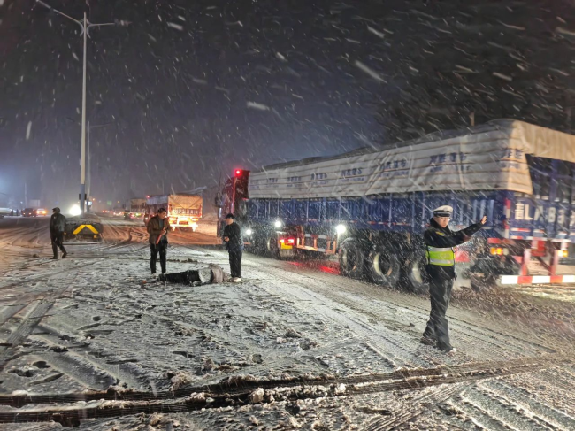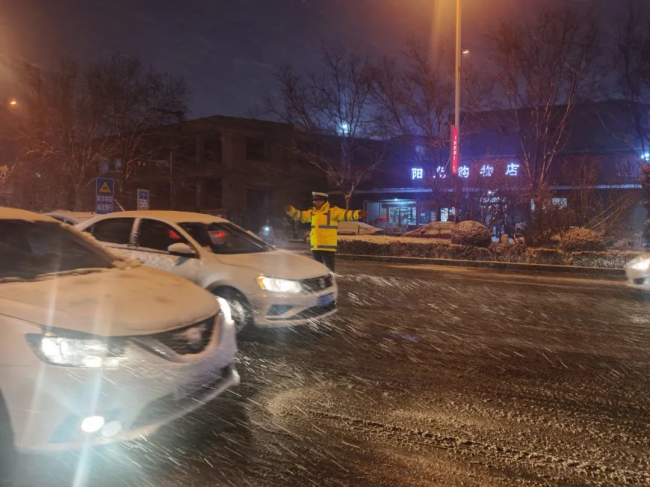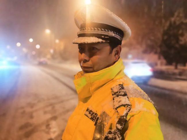 本网讯:(薛苏俊) 一场大雪突降 一抹抹藏蓝守望平安