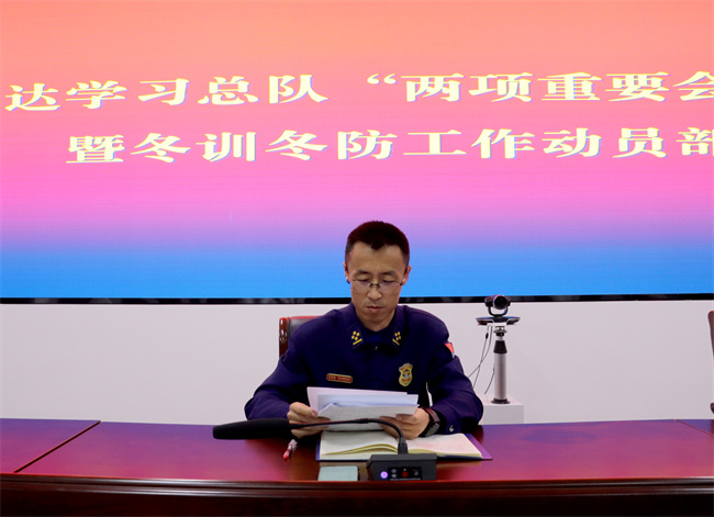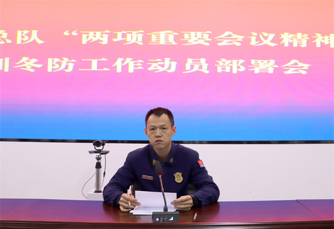 会上,徐兵山副大队长逐一传达学习了总队首长在全面建设形势分析会和训练工作形势分析会上重要讲话精神,指出要在全面深入学习掌握会议精神和鲜明导向的基础上,充分学习借鉴兄弟单位好的经验做法,正视本级存在的瓶颈问题和短板弱项,以开展冬训冬防工作为契机,切实增强抓好冬训冬防工作的责任感和紧迫感,从严从实从细抓好战备训练工作末端落实,为队伍提质强能注入生机和活力。