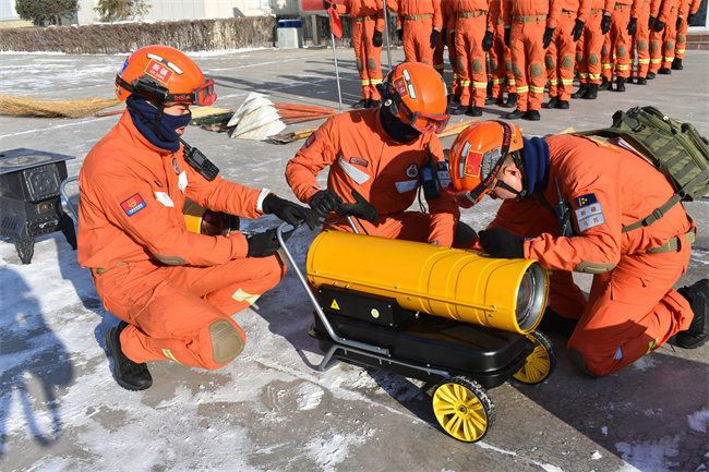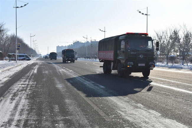 冰雪灾害救援拉动演练 为驻地平安保驾护航