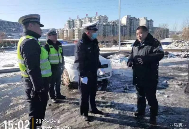 本网讯:(郝华斌)12月16日,临汾市公安局党委委员、交警支队支队长曹国刚深入霍州市调研冰雪天气道路交通安全管理工作。霍州市公安局党委委员、交警大队大队长郜岽栋陪同。