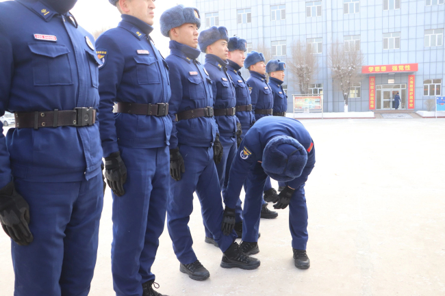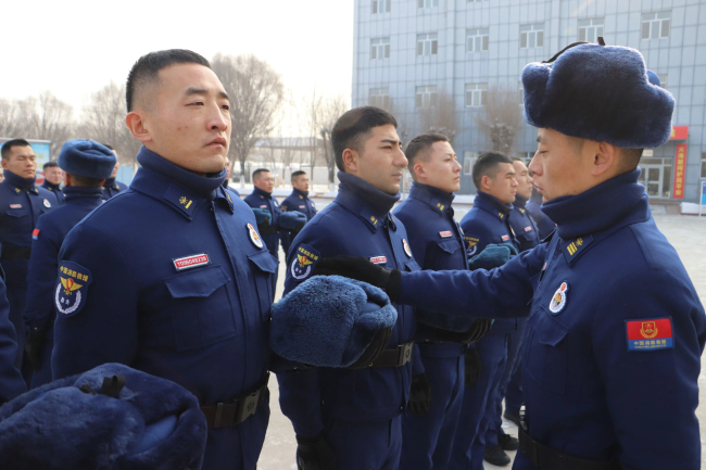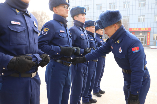 本网讯:(官文豪 杨坤雨)近日新疆多地极速降温,总队首长高度关注指战员个人服装保暖情况。为落实总队首长指示,同时加强队伍正规化建设,在冬季换装之际,新疆森林消防总队特勤大队严密开展队容风纪检查,进一步抓好队伍正规化管理水平,着力促进日常养成、打造过硬作风、树立良好形象。