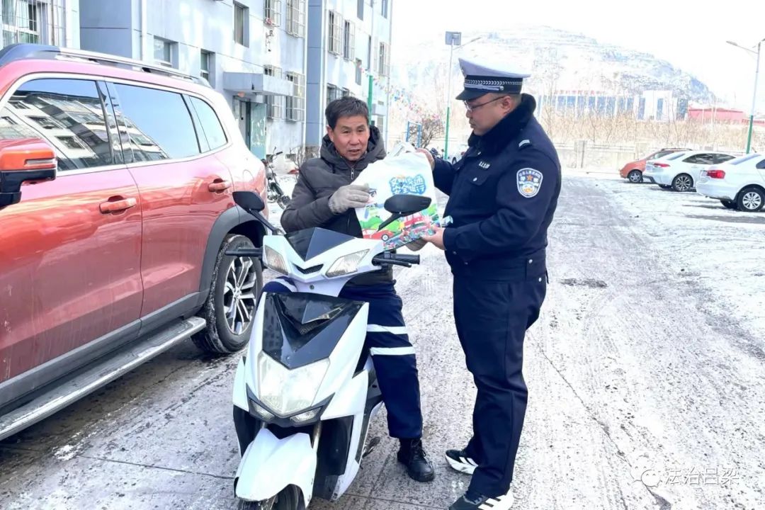山西吕梁:中阳交警进社区送暖冬“平安礼包”