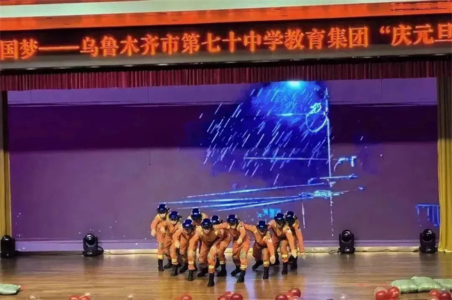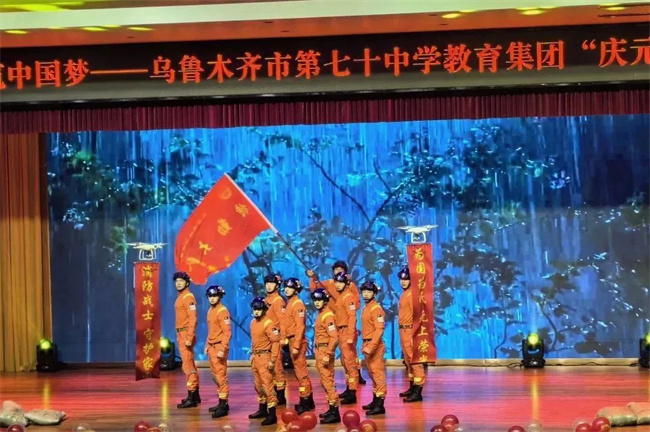 本网讯:(杜建茂 杨坤雨)光与影交织谱写旋律,声与乐同频共鸣凯歌。近日,新疆森林消防总队特勤大队受乌鲁木齐市第七十中学邀请,参加“青春建功新时代 同心共筑中国梦”文艺汇演活动。