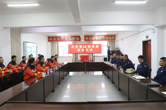 本网讯:(官文豪 杨坤雨)为深入学习贯彻习近平新时代中国特色社会主义思想,进一步深化党建联创共建,强化党建与业务工作深度融合提升,切实推动主题教育走深走实,充分发挥党建引领作用,拓宽基层党组织协作途径,近日,国家管网集团乌鲁木齐维抢修中心到新疆森林消防总队特勤大队参观见学,联合开展友好党组织公建活动,近距离体验消防救援人员的工作,实地学习消防救援相关知识。