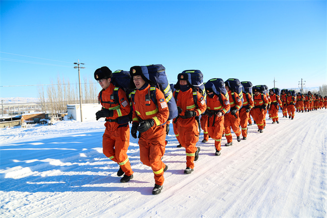 一次野营拉练,就是一次激昂青春的远行 一次野营拉练,就是一次战斗精神的锤炼 一次野营拉练,就是一次实战能力的检验 寒风凛冽,旌旗飘飘。为促进年度训练工作落实,更好的打牢队伍训练基础,全面掀起“冬训促强能、百日砺精兵”活动热潮,1月4日阿勒泰地区森林消防支队阿勒泰大队组织开展野营拉练训练,全体指战员战风霜、斗严寒,一路翻山越岭,披荆斩棘。 “嘟嘟嘟嘟……”,一声急促的哨响刺破了清晨,野营拉练开始了!指战员迅速行动,穿上衣服、背上背囊,踏上了30公里的拉练征程。 “刀山敢上,火海敢闯,我们赴汤蹈火奔向救援战场,英勇顽强,不怕牺牲,我们逆向前行为生命带来希望……”伴随着一阵嘹亮的歌声,指战员们唱着豪迈的歌曲、迈着整齐的步伐,跟随着鲜艳的队旗,一路向前、向前……开始了他们的野营拉练训练。 为了缓解指战员拉练途中的疲劳、畏难和怯战情绪,中队灵活运用“八个到一线”,按照“行动有口号、途中有表演、小休有歌声、全程有鼓动”的要求,通过唱励志歌曲、讲红色故事、重温入党誓词等活动,激励指战员始终保持高昂的战斗热情。 走在喀拉尕什牧场中,厚厚的积雪为指战员留下一个个清晰的脚印,不时有雪花飘在脸上,周围安静的只剩下咯吱咯吱的响声,这世界都属于北疆火焰蓝。冬日的阿勒泰达到零下十六度,道路积雪、积冰较多,无论是滑倒了一身雪,还是出完汗后被冷风一吹浑身哆嗦,对队员们来说都是不小的挑战。拉练全程,干部骨干以身作则、率先垂范;全体指战员,精神抖擞、斗志昂扬、互相鼓励、团结一致,充分体现了团结协作的团队精神和不怕苦、不怕累的拼搏精神。 “路漫漫其修远兮,吾将上下而求索。”实战化对接冬训场,本次野营拉练,不仅是对全体指战员身体上、心灵上的一次“淬火”,更是新年度开训的启程号角。 责编:李鹏 景虎子 |