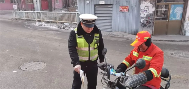 本网讯:(郝华斌)为进一步提升广大农村群众的交通安全意识和守法意识,切实做好冬季农村道路交通管理工作,有效预防和减少农村道路交通安全事故的发生。1月8日,霍州市公安局交警大队三中队、综合科民警走进塔底村、北村开展“美丽乡村行”交通安全巡回宣传活动,为群众出行增加一份安全保障。