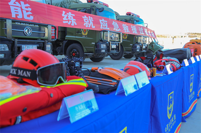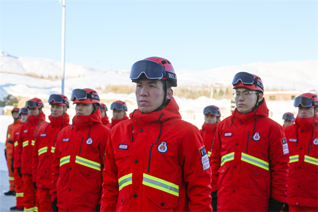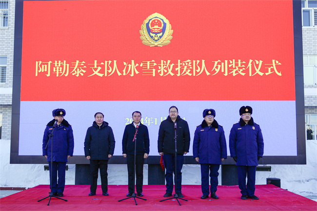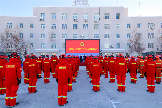 阿勒泰森林消防支队隆重举行冰雪救援机动队列装仪式