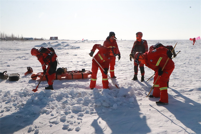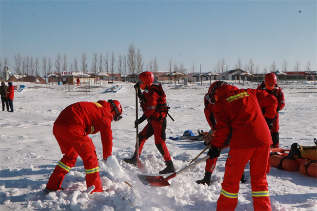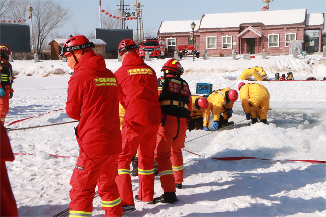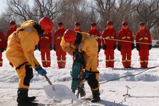 ![]() “通过本次冰面救援实战化演练,展现出了队员们不畏严寒,联合兄弟单位精诚合作、迎难而上的精神气概,提高了冰面救援和应急处置综合能力,为下步开展其他救援训练积累了经验。”作训科副科长杭尹修说道。