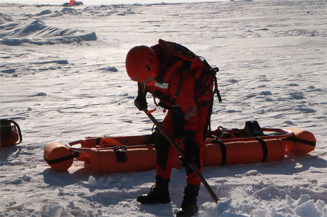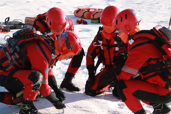 ![]() ![]() 为确保训练效果取得预期实效,支队采取“理论先行、实践并重”的模式,组织具有冰面救援实战经验的骨干结合冰面救援实战案例,从落水事故类型、救援危险因素、救人行动等方面分析强调冰面救援存在的安全隐患,传达“安全、快速、高效”的基本救援理念,并结合支队现有的冰上救援器材和相关实践经验,开展了器材运送、安全防护、冰面探测、冰面移除、锚点制作等多项科目的操作。