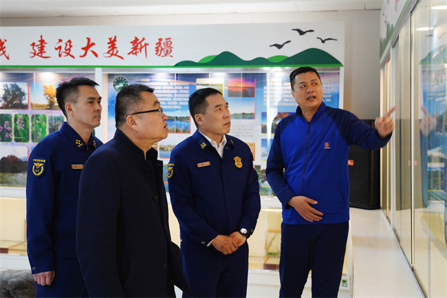 本网讯:(孟兴帅)近日,新疆森林消防总队防火监督处张艳明处长、乌苏甘家湖林场闫建华场长等一行领导深入乌苏甘家湖重点林区开展可燃物踏查工作。