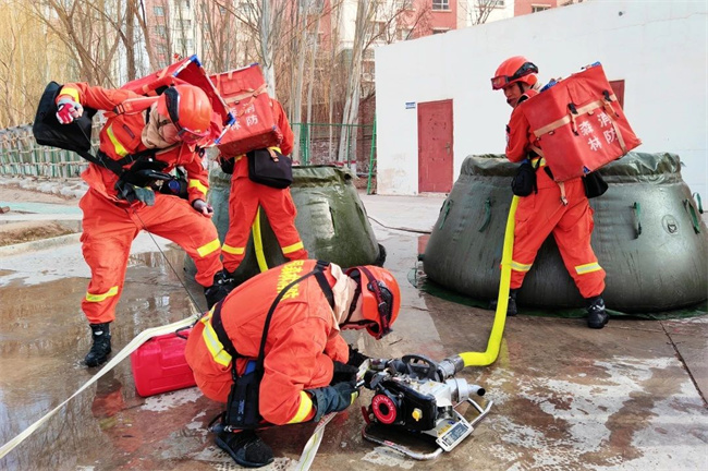 本网讯:(于军鹏 朱海峰)冬防冬训验收考核在即,为在考核中能够取得优异成绩,新疆森林消防总队特勤大队以备战为牵引,以打赢实战为目标,扎实开展水泵架设与撤收训练。