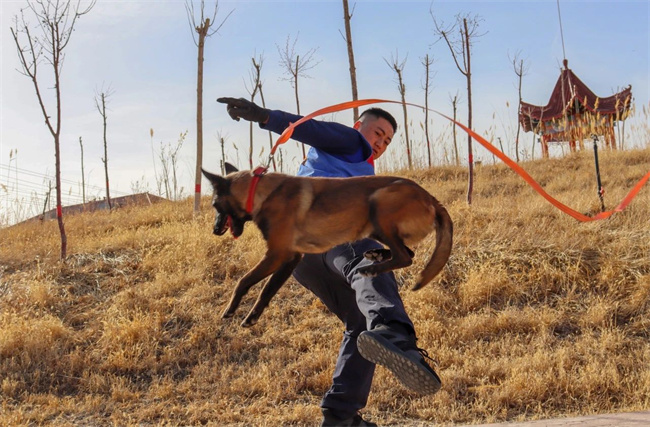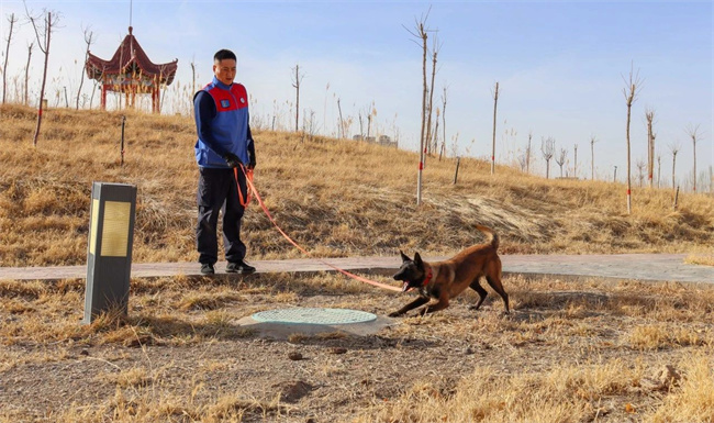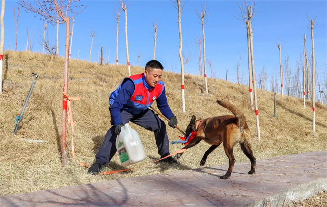本网讯:(刘朝阳)“前进……坐下……”伴随着训导员的一声声口令,在训练场上搜救犬“小飒”瞬间进入工作状态,坐卧、随行、听从远距离指挥、送物衔取……每一个动作都始终和训导员的节奏保持统一。近日,巴州森林消防支队库尔勒大队训导员靳荣杰与搜救犬“小飒”又展开了一天的训练。