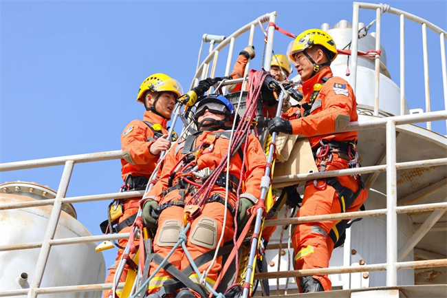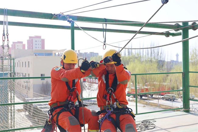 本网讯:(于军鹏 马志强)为进一步提高队伍在山岳、高空等特殊灾害事故中的应急救援能力,着力推进救援水平向专业化、规范化、实战化方向发展。连日来,新疆森林消防总队特勤大队与新疆消防救援总队多名技术骨干共同开展绳索救援实战化训练,共同提升综合应急救援实战能力。