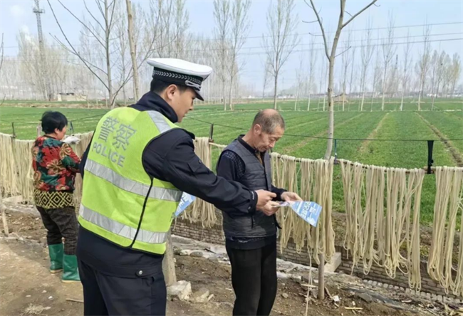 本网讯:(王新晋)为切实做好春季交通安全宣传工作,提高广大农村交通参与者的道路交通安全意识。3月26日,尧都区公安局交警大队一中队、三中队、四中队民警走进辖区农村开展春季交通安全宣传活动,全面护航春耕期间辖区道路交通安全。一中队 孙乔村 三中队 车辐村