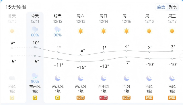 12月14日:全市晴天间多云,气温持续偏低。 事故多发路段及易结冰路段 滨河南路永宁桥南路段 滨河北路永宁桥北路段 前进北街桥下路段 文丰路通往凤山教育园区上坡路段