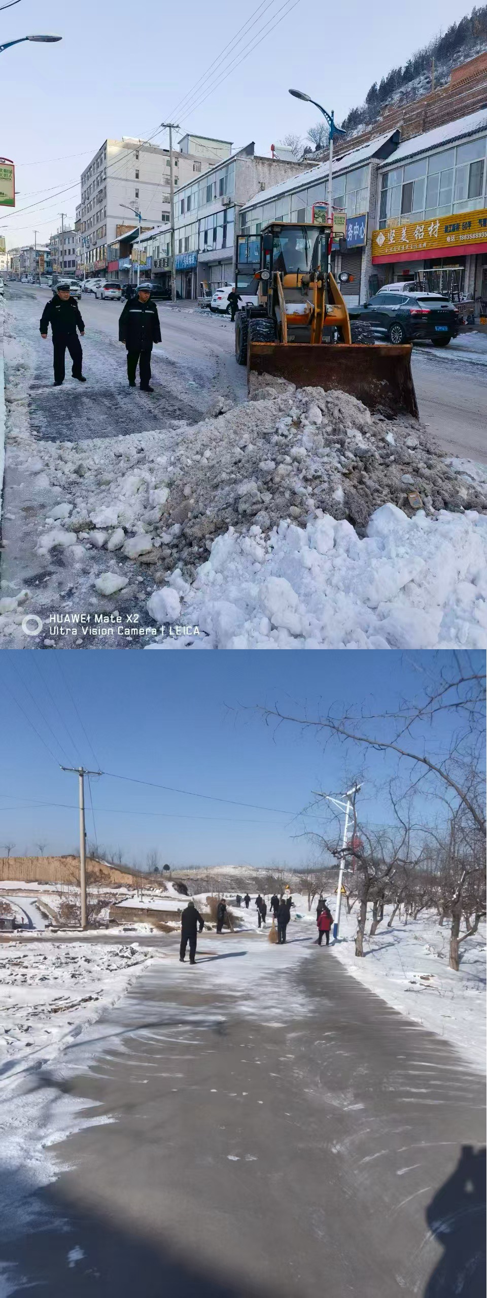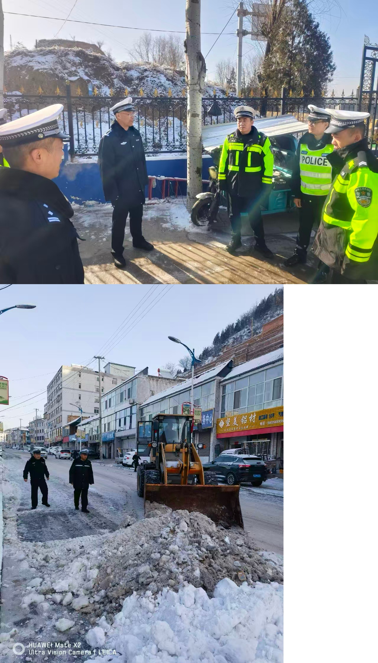 在这场与风雪的较量中,临县公安交警多点发力、多措并举,构建起全方位的安全防护网。一是领导带头,实地督导。县公安局局领导、交管大队大队长王宏金、交管大队教导员秦文明带领班子成员兵分两路,深入全县国省道、县乡道路一线,实地查看路面积雪结冰情况,现场督导铲雪除冰、路面防控、安全防护等工作,确保各项措施落地见效。二是联动乡镇,全民参与。各辖区交警中队主动对接乡镇党委、政府,广泛动员群众、志愿者参与县乡道路积雪清扫,同时联合劝导员在路口、村口开展安全宣传与出行劝导,提醒群众谨慎驾驶、安全通行。三是跨部门协作,高效除患。主动联系公路、交通运输、应急管理等部门,整合铲雪车、撒盐车等机械设备,开展联合铲雪除冰作业,对陡坡、急弯、桥梁等易结冰路段重点处置,坚决清除路面安全隐患。四是精准预警,科学引导。通过微信公众号、抖音、本地媒体平台等渠道,持续发布实时路况信息、雪天行车安全提示及绕行建议,引导群众合理规划出行路线,避免前往危险路段,最大限度减少交通事故风险。