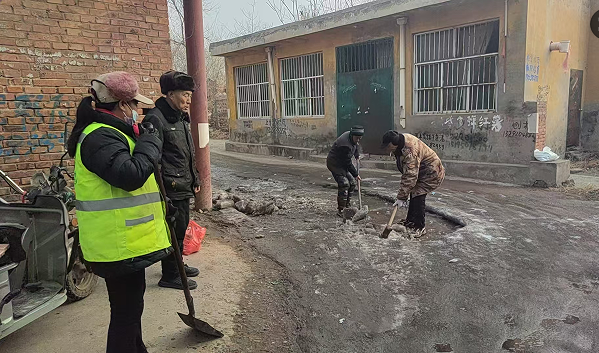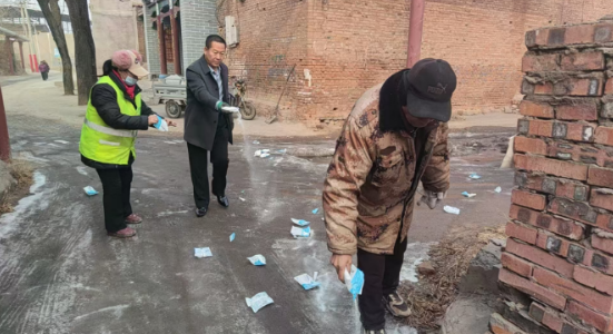连日来,为了确保村民的出行安全,武安市土山镇东寨子村书记苗守华带领村委会组织青壯劳动力,开始清理街道上的冰块,他们不畏寒冷,铲冰、碎冰,把冰块全部运走。这种主动