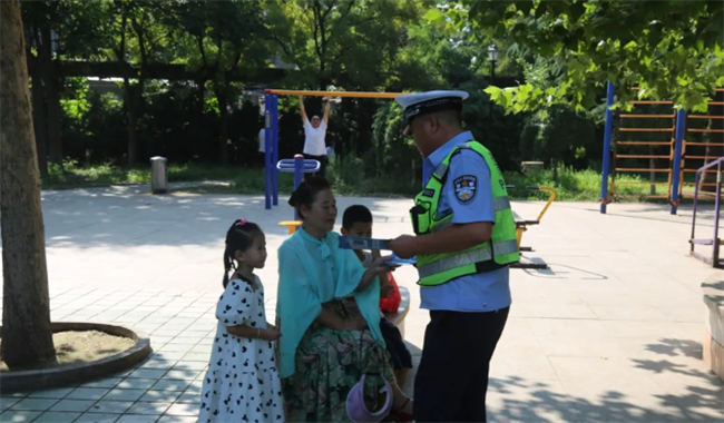 活动中,民警结合辖区实际情况,针对社区“一老一小”群体交通安全意识不强的问题,通过发放宣传资料、面对面宣讲等方式,与居民“零距离”互动交流,紧紧围绕“一盔一带,安全常在”详细讲解关于骑乘电动车不佩戴安全头盔、驾乘车辆不系安全带、酒驾醉驾、开车接打手机、闯红灯等交通违法行为的危害。叮嘱大家切勿乘坐货车、农用车、超员车和“带病车”,让广大群众深刻认识到交通安全的重要性,切实养成文明参与交通的良好习惯。同时倡导广大群众要养成有序停车的良好习惯切勿乱停乱放、占用消防通道等行为。