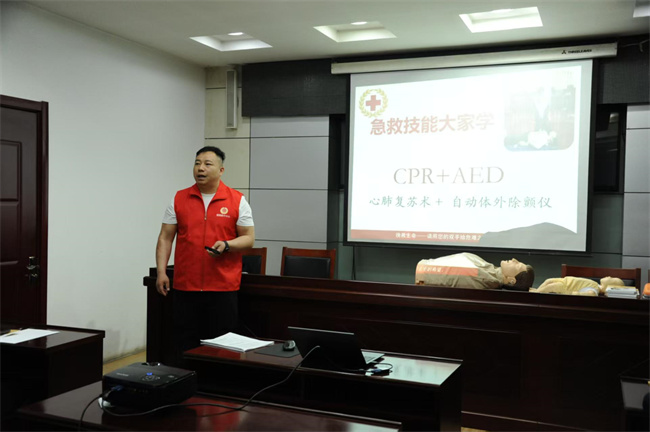 培训中,讲师结合公安工作实际,采取“理论讲解+示范教学”“实际操作+考核验收”相结合的方式,重点围绕AED(自动体外除颤器)使用流程、心肺复苏术(CPR)、创伤救护(止血、包扎)、气道异物梗阻处理等专业急救知识进行讲解及示范,让大家深刻认识到掌握急救知识的重要性和必要性。
