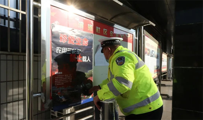 本网讯:(郝华斌)为进一步预防和减少道路交通事故,创建人人参与、人人共享的文明交通环境,从源头上预防和减少道路交通事故的发生,大力提高社区居民的交通安全意识。1月11日,霍州市公安局交警大队城市中队、宣教科民警走进辖区滨河社区开展交通安全宣传活动。
