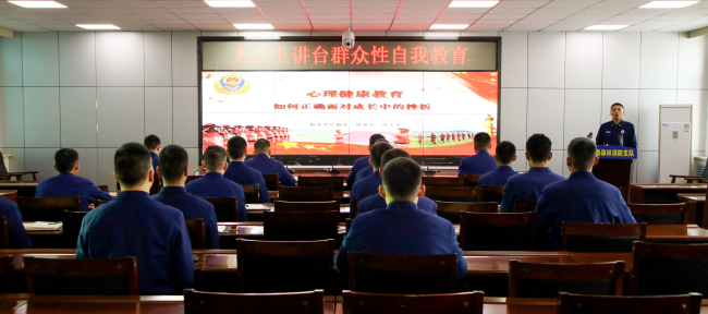 学习教育“提心境” 创新性开展授课模式,充分发挥心理疏导员作用是疏通人员心理疙瘩的重要手段,支队通过“人人上讲台”活动,紧贴社会热点完善授课内容,活用新事例、引用新方法,把传统内容讲新,把典型事例讲活,使全体人员在工作与生活中明辨是非曲直,划清荣辱美丑界限,感悟生命意义、人生价值,树立正确的人生追求。在授课的基础上,引导全体人员学会自我调节心理压力,舒缓情绪,改善不良情绪与舒缓压力的技巧和方法。“‘没有痛苦就没有天才,没有哀怨就没有人生’正因为有了挫折,成功才显得弥足珍贵;正因为有了坎坷,人生才显得丰富多彩。因此,在生活中,我们要保持坚强的意志,无论遇到什么样的挫折,都应该展现出顽强的斗志、进攻的姿态,从中感受成功的艰辛、成果的珍贵”心理疏导员薛文军同志授课中讲到。