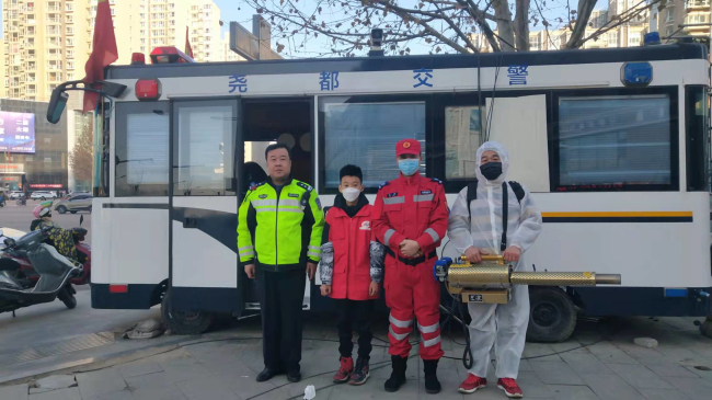 ![]() ![]() 尧都天龙救援队秘书长景文杰同志17日上午率领尧都天龙的伙伴们身穿防护服、手持弥雾机,采用地毯式喷酒消毒液的方式,对区政府交通岗亭、华州路交通岗亭、解放路学校交通岗亭、尧都公安东城执法站等进行了全面细致消毒,力争做到全方位覆盖不留死角。消杀现场,烟雾弥漫,气味刺鼻,但是天龙救援队队员们却没有丝毫懈怠,大家纷纷表示,公安民警为创建东城和谐交通,风吹日晒,不辞辛苦的坚守岗位,此次义务消毒也是希望能够让民警的工作环境更加舒适安全,更是表达尧都天龙救援队对公安民警辛勤付出的感谢。