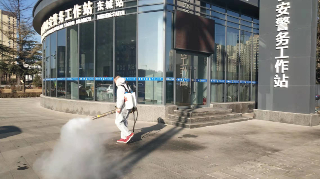本网讯:(景文杰吉园)为全力做好新冠肺炎疫情防控工作,积极为广大公安民警营造安全、健康、卫生的执勤环境,1月17日上午,尧都天龙救援队专程到东城开展义务防疫消杀工作。