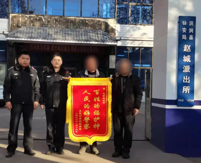 本网讯:(薛苏俊)洪洞县公安局赵城派出所秉承“热心服务、尽心履职”的工作态度,以实际行动为群众办实事,办好事,解难题,2022年1月14,及时救助一名走失老人,为寒冷的冬天带来一份温暖。![]() 2022年1月17日,老人家属将一面写着“百姓的保护神,人民的好警察”的锦旗送至值班民警手中表示感谢。 责编:李鹏 景虎子 |
