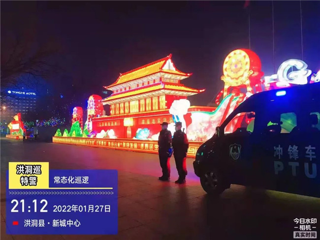 本网讯:(薛苏俊) 为切实维护春节期间社会治安稳定,保障人民群众欢度佳节,洪洞公安结合当前社会治安形势,强化街面治安巡逻防控,以最高标准、最强措施、最严要求,扎实开展全方位、全时段维稳安保防控工作,切实提高街面见警率、管事率,强力震慑街面犯罪,让警灯闪烁成为群众心中的寒冬温暖,守护洪洞平安。